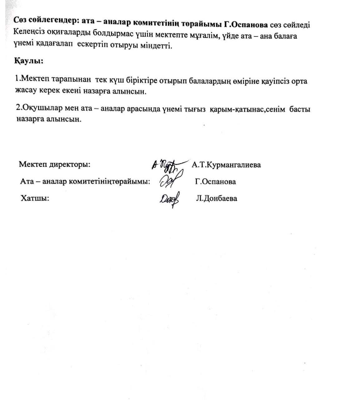 30 апрель 2025 0 1 2 3 4 5 І.Есенберлин атындағы МДШО бар орта мектебінің жалпы мектепішілік ата - аналар жиналысының хаттамасы