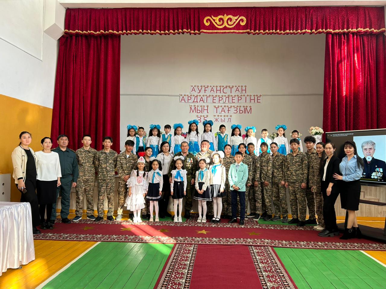 Ауған соғыс ардагерін құрметтеу, жас ұрпақтың патриоттық сезімдерін оятып, Отан үшін жат жерде көз жұмған Қазақстан азаматтарын еске алу, жауынгерлердің қысқа ғұмырынан үлгі-өнеге, тарихи тағылым беру, оқушылардың елжандылыққа, отансүйгіштікке, ізгілікке баули отырып тәрбие беру мақсатында Жетісу облысы Қаратал ауданы І.Есенберлин атындағы орта мектебінде ауданымызда тұратын Ауған соғыс ардагерлерін құрметпен шақырып, биыл ерекше аталып отырған Кеңес әскерінің Ауғанстан жерінен шығарылғанына 35 жыл толғанына орай "Ауғанстан ардагерлеріне мың тағзым" атты іс-шара ұйымдастырылды.