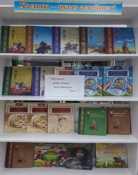І.Есенберлин атындағы МДШО бар орта мектеп кітапханасында 2023 жылдың 17 қазан айында ұлттық мәдени-ағартушылық жобаның аясында оқушылардың бойында өз халқына және оның дәстүрлеріне құрмет сезімін тәрбиелеу, эмоционалды интеллекті қалыптастыру, шешендік өнердің баға жетпес мұрасын дәріптеу арқылы дарынды шығармашыл жастарды анықтау мақсатында : “Кітапті жан азық деп қанып іш...” атты кітаптар көрмесі өткізілді. Көрмеге 7-8 сынып білім алушылары қатысып, жылдамдыққа оқу сайысы арқылы көркем сөз оқыды, өздерінің оқыған кітаптары туралы әңгімелеп берді.