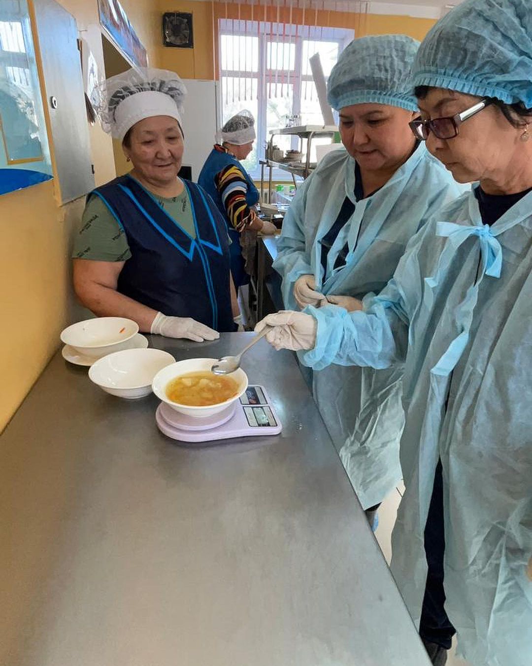 І.Есенберлин атындағы МДШО бар орта мектеп асханасында тегін ыстық тамақтың сапасын бақылау мақсатында бракераждық комиссия мүшелері ыстық тамақтың сапасын тексеріп, акт толтырды.
